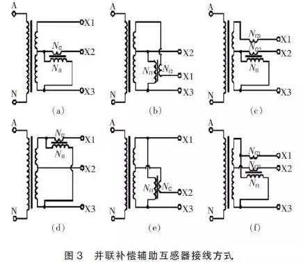 圖3(f)接線辦法,滿匝和抽頭的過失補償值可分別按式(3)和式(5)核算。
