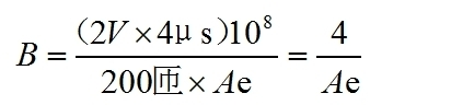 現(xiàn)在我們來看磁芯,假定二管是一般的一般的二管,通態(tài)電壓大約為1V,電流為10A/200=50mA。互感器輸出電壓為1V,加上二管的通態(tài)電壓1V,總電壓大約2V。250kHz頻率作業(yè)時(shí),磁芯上的磁感應(yīng)強(qiáng)度不會跨過